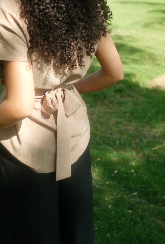 The beige linen pants