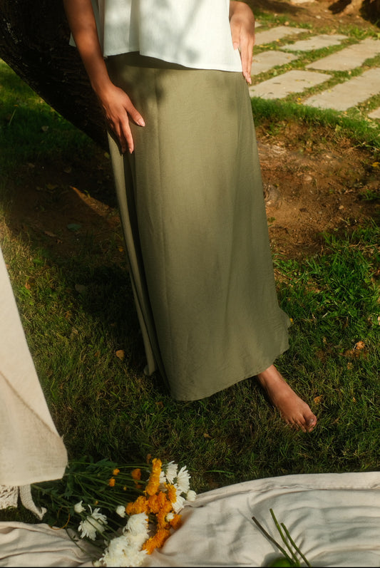 Sold outThe olive linen skirt
